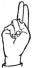 На ћирилици написано КОСТАДИН БЕЛОПОЉАЦ састоји се из 17 слова [?]. Исписано ћириличном једноручном азбуком за глувонеме: